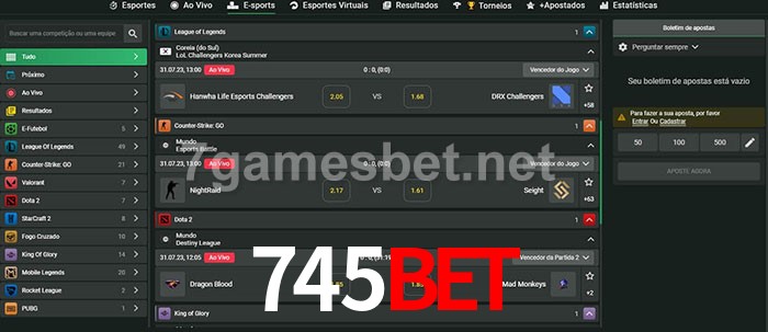 O 745bet oferece uma grande seleção de opções de apostas em e-sports com probabilidades competitivas